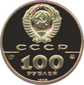 Золотая юбилейная монета СССР 100 рублей 1989 года Государственная печать Ивана III 500-летие единого русского государства
