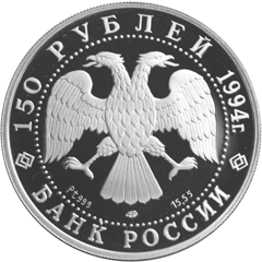 Платиновая памятная монета 150 рублей 1994 года В антарктических водах Первая русская антарктическая экспедиция