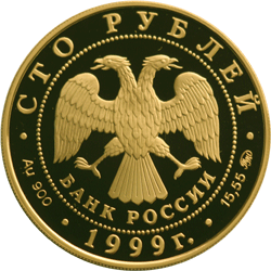Золотая юбилейная монета 100 рублей 1999 года Александр Пушкин 1799 - 1837